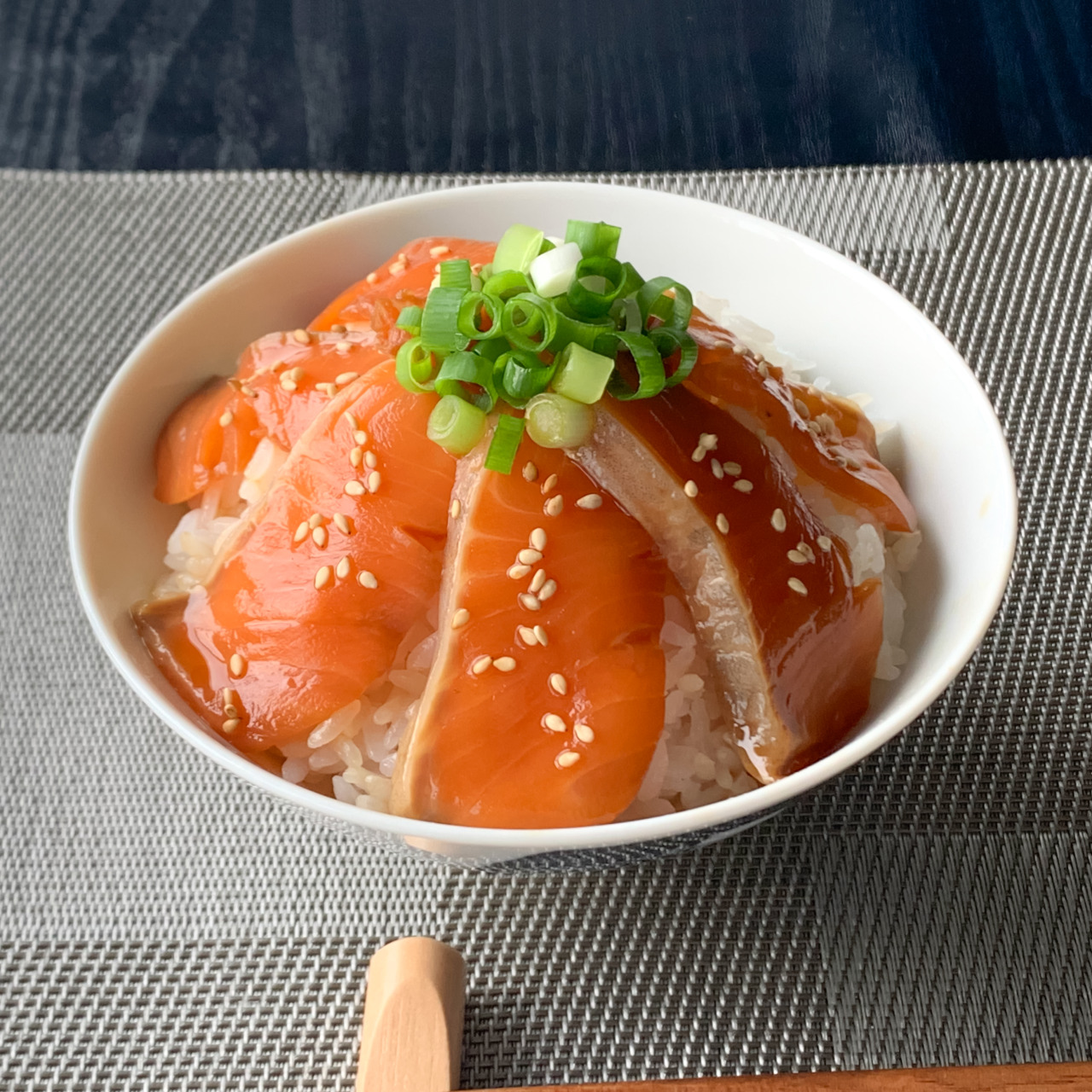 みやぎのブランド銀鮭を特製たれであじわう漬け丼の具。