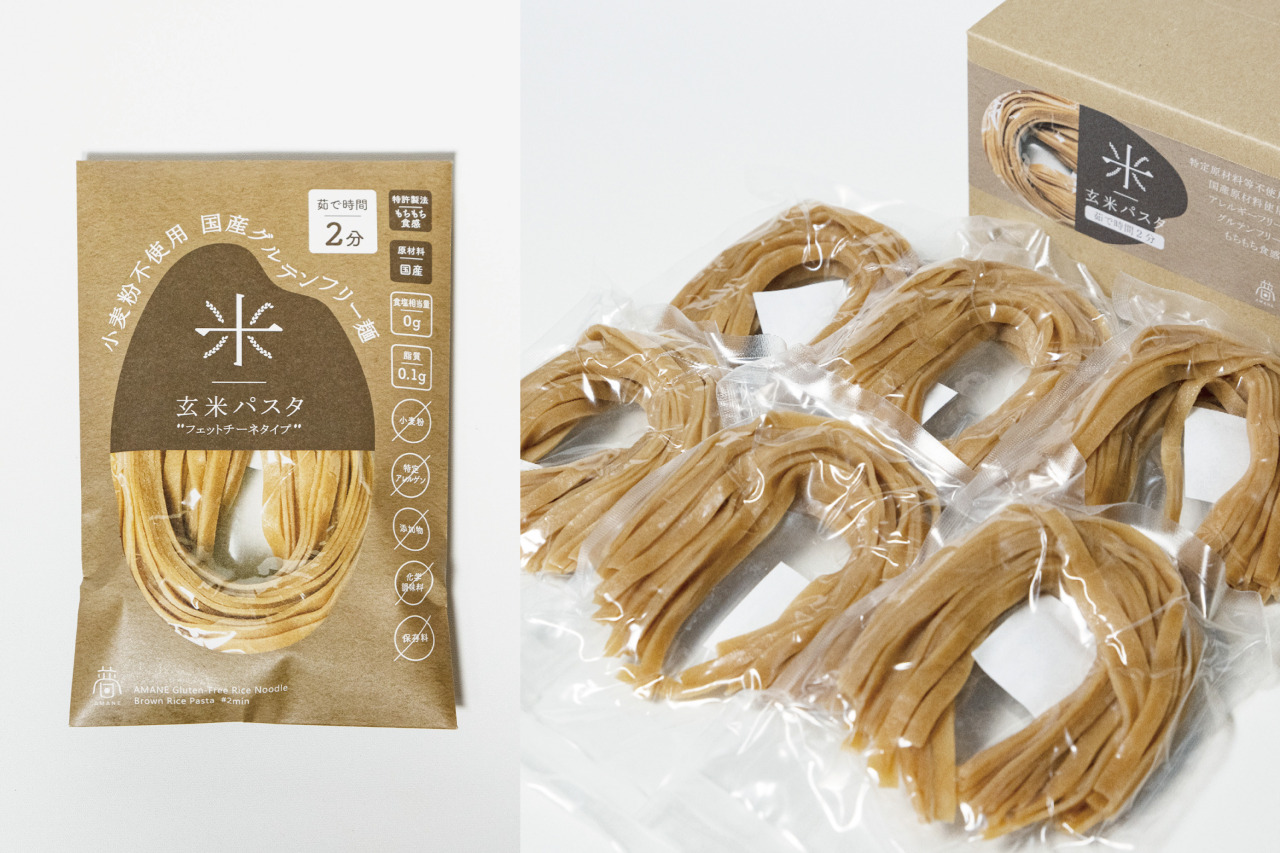 ヘルシーなグルテンフリーの玄米パスタです。モッチリ食感のフィットチーネタイプで茹で時間はたったの2分。宮城県産コシヒカリを100%使用し、栄養豊富な玄米の平打ちパスタです。冬にはパスタはもちろん、カレーうどんや鍋の〆でのご利用もオススメです。使い方は小麦のパスタに置き換えるだけで簡単に利用でき、便利な2分の早茹で可能な上に、小麦の麺より低カロリーで低脂質なヘルシーさも男女問わず人気のポイントです。