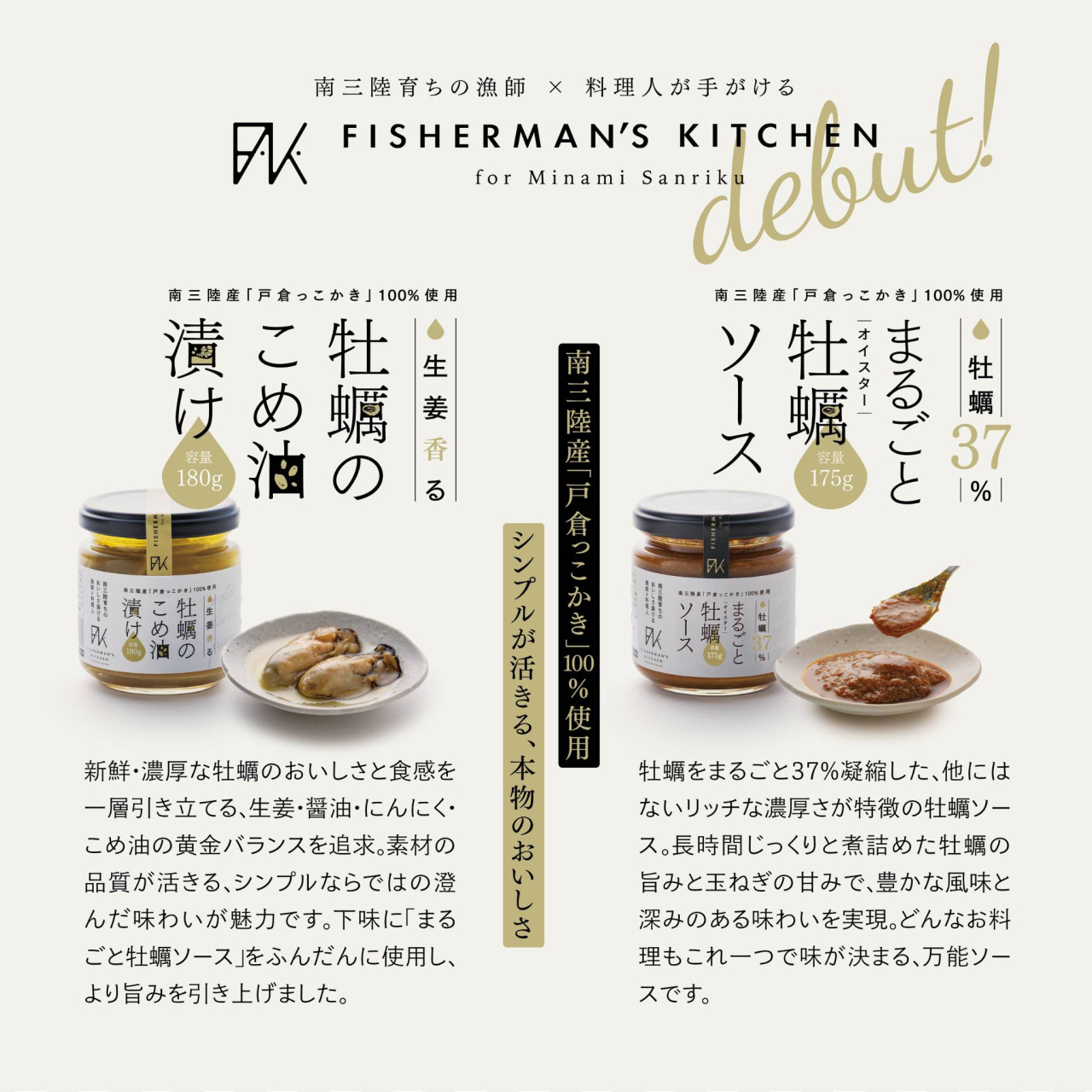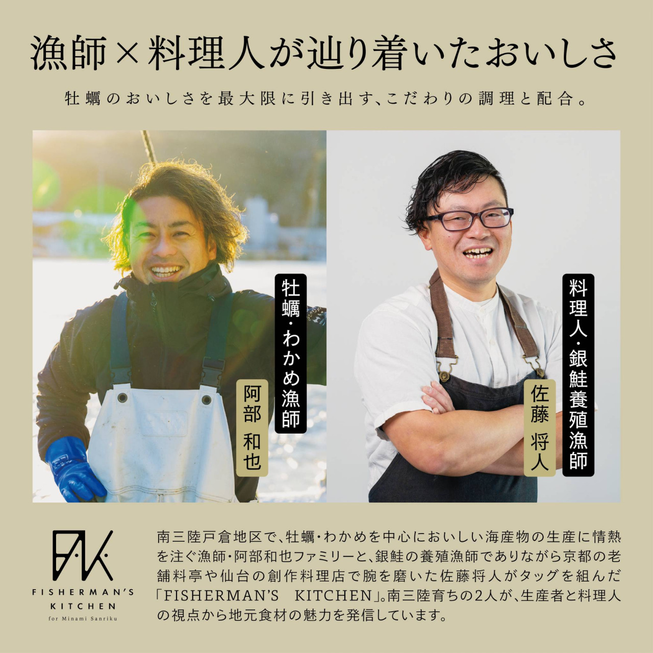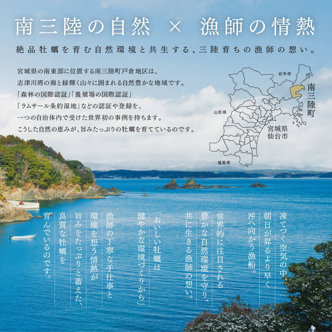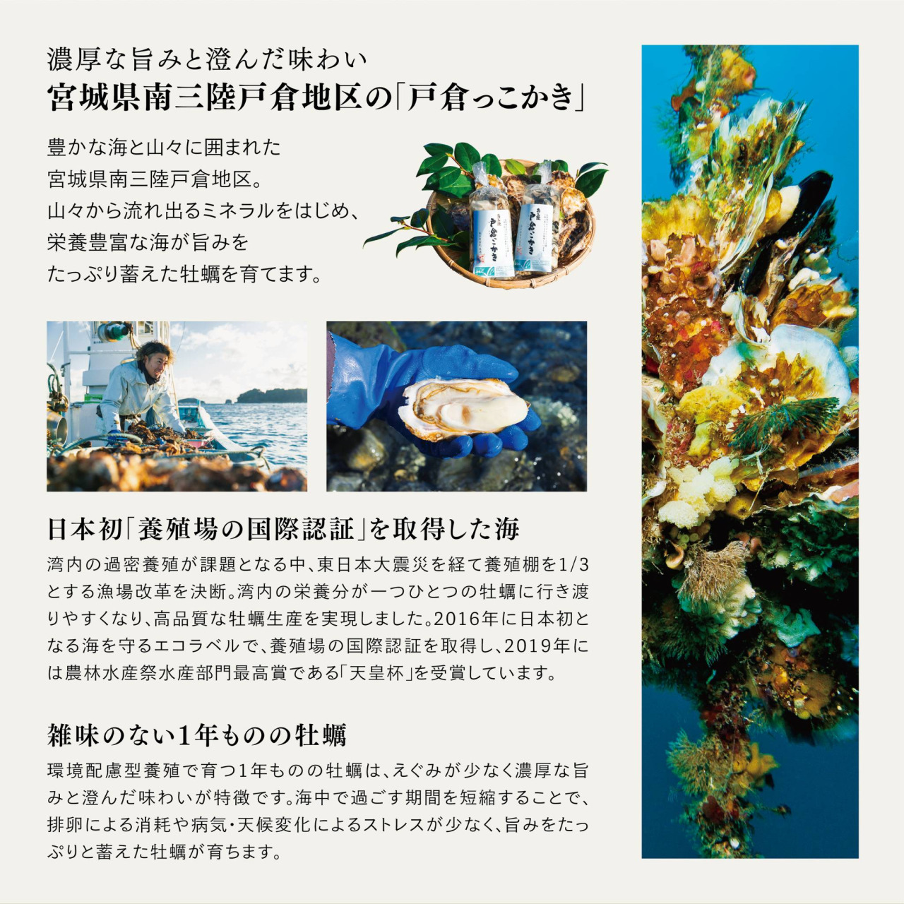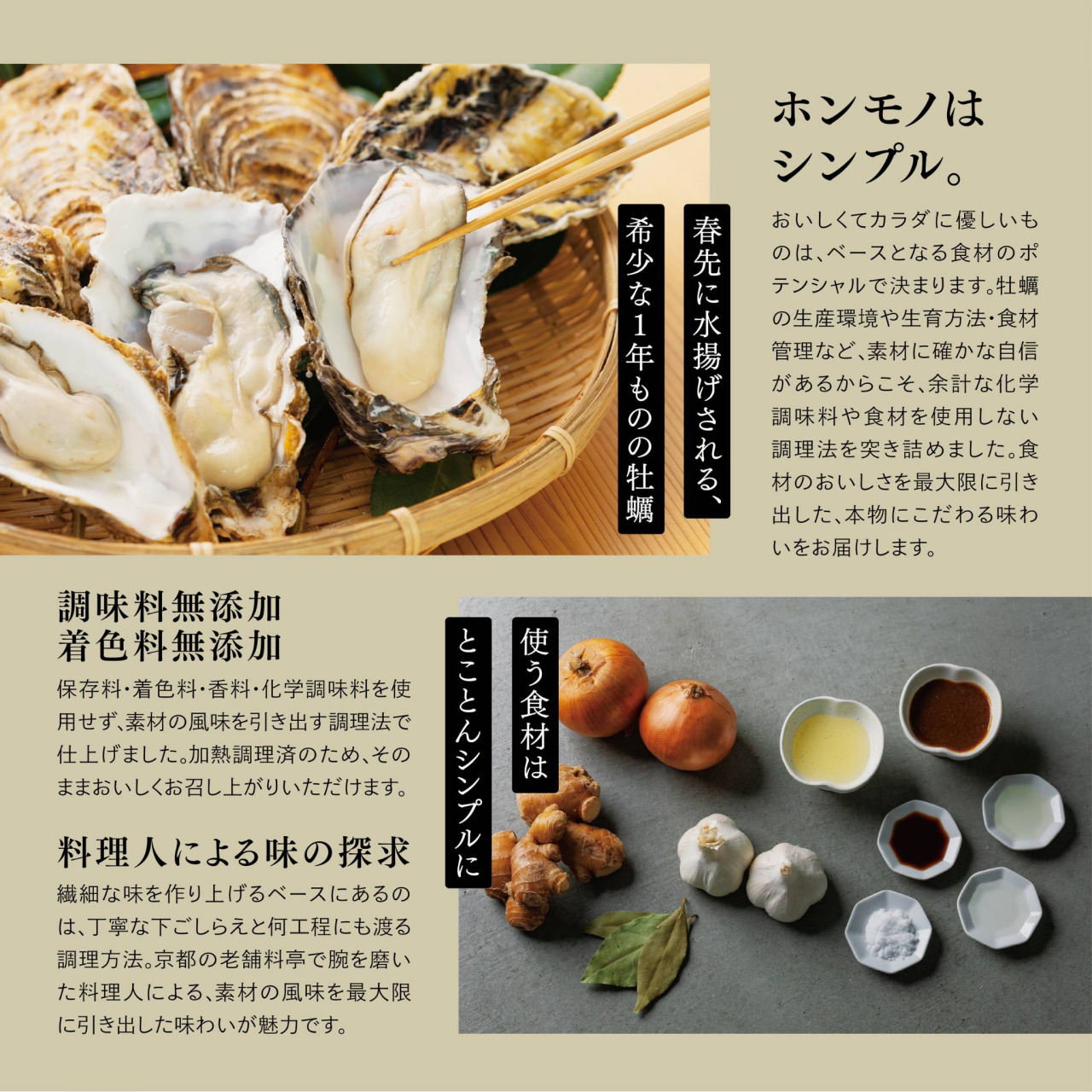 牡蠣(宮城県本吉郡南三陸町産)、玉ねぎ、しょうゆ、清酒、砂糖、しょうが、にんにく、食塩、​​ベイリーブ、(一部に小麦・大豆を含む)