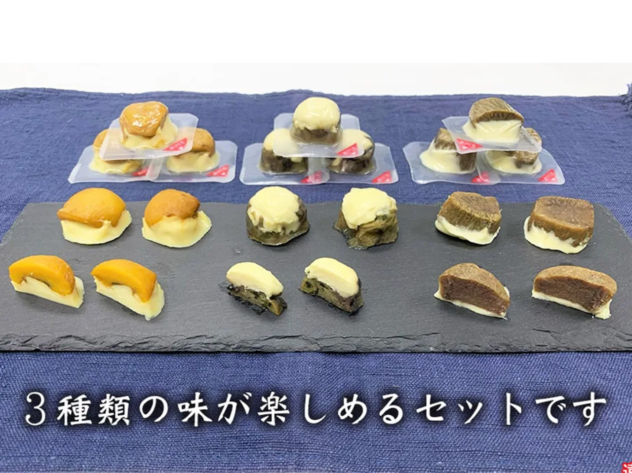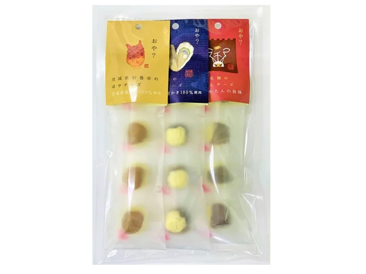 宮城県特産品(5つの味覚を持つと言われるほや、濃厚な味わいの牡蠣、仙台発祥とされる牛たん)を、それぞれの素材に合わせた味付けをし、濃厚チーズと合わせ一口サイズに仕上げた逸品です。