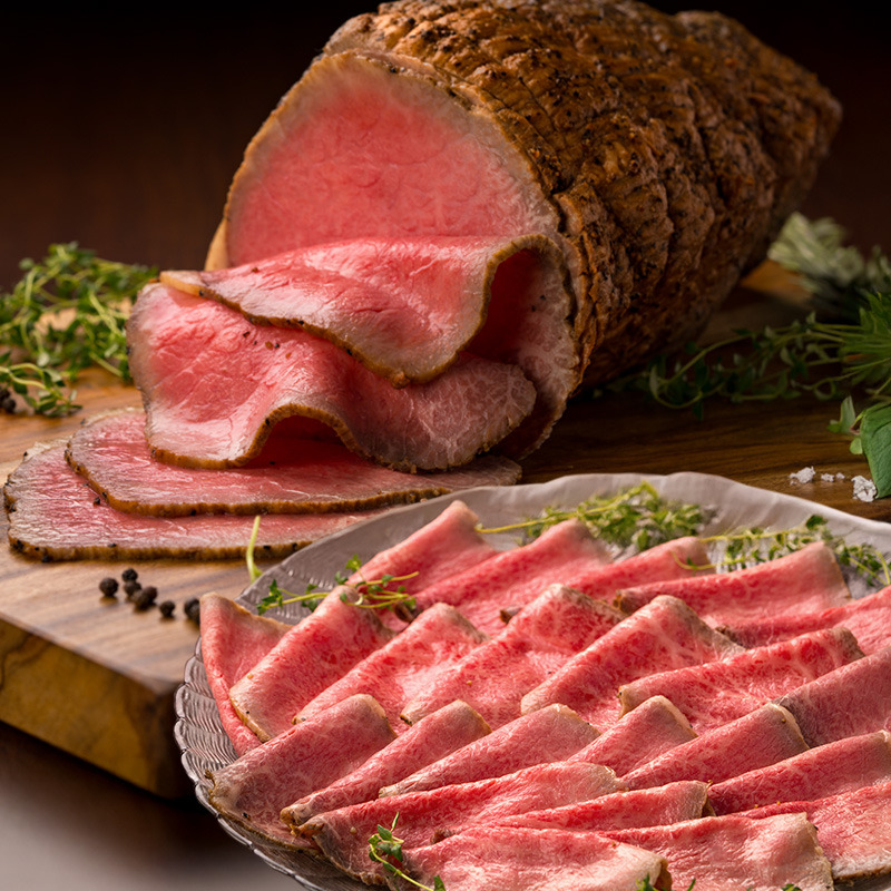 最高品質の仙台牛のモモを丸ごとオーブンに入れ、じっくり焼き上げたこだわりの逸品