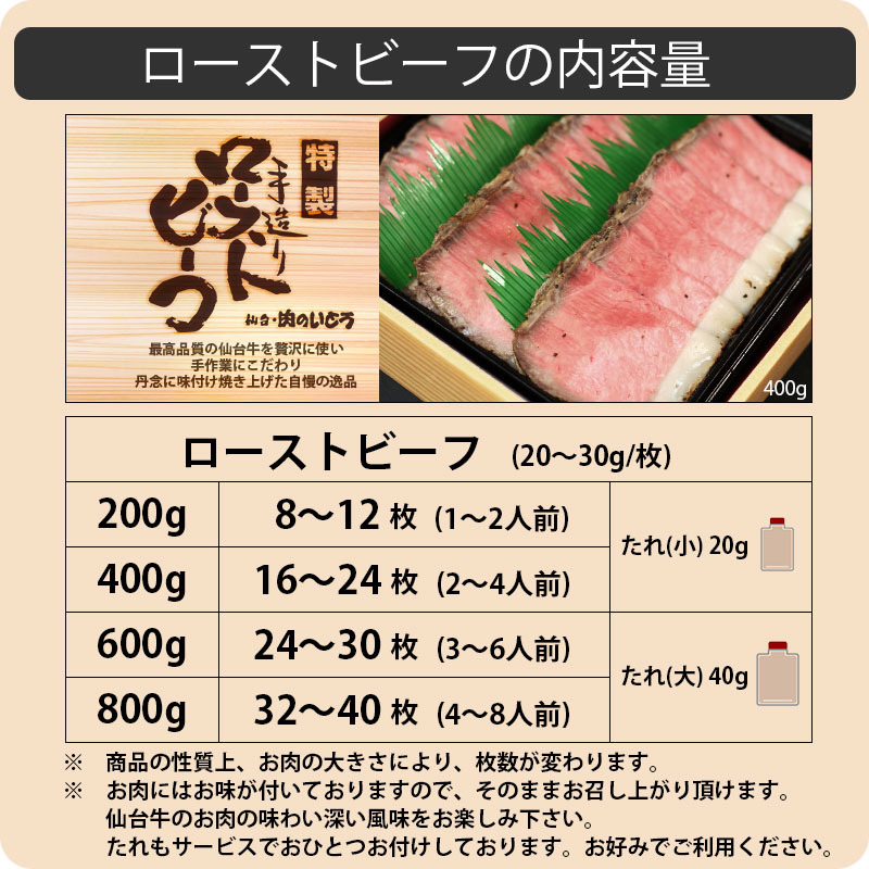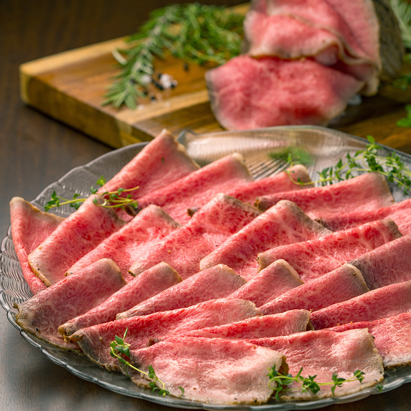 宮城県が誇る最高級黒毛和牛「仙台牛」。その中でも、最上級のA5ランクだけを厳選し、丁寧に仕上げた当店自慢のローストビーフをご紹介します。