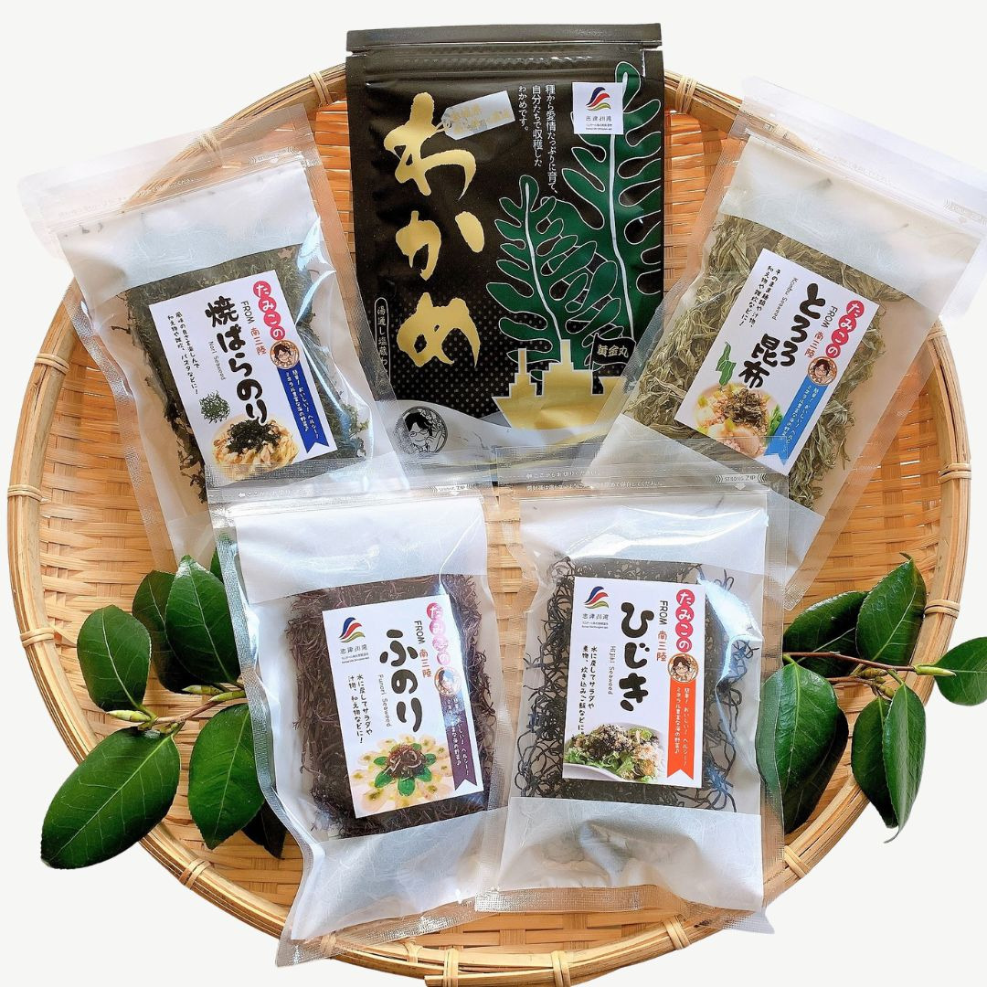 磯の香りと旨みをぎゅっと詰め込んだ贈り物にも最適な逸品 三陸の豊かな海で育まれた国産の良質な海藻類(ふのり・ひじき・わかめ など)を、丁寧に乾燥加工した「磯物パック」