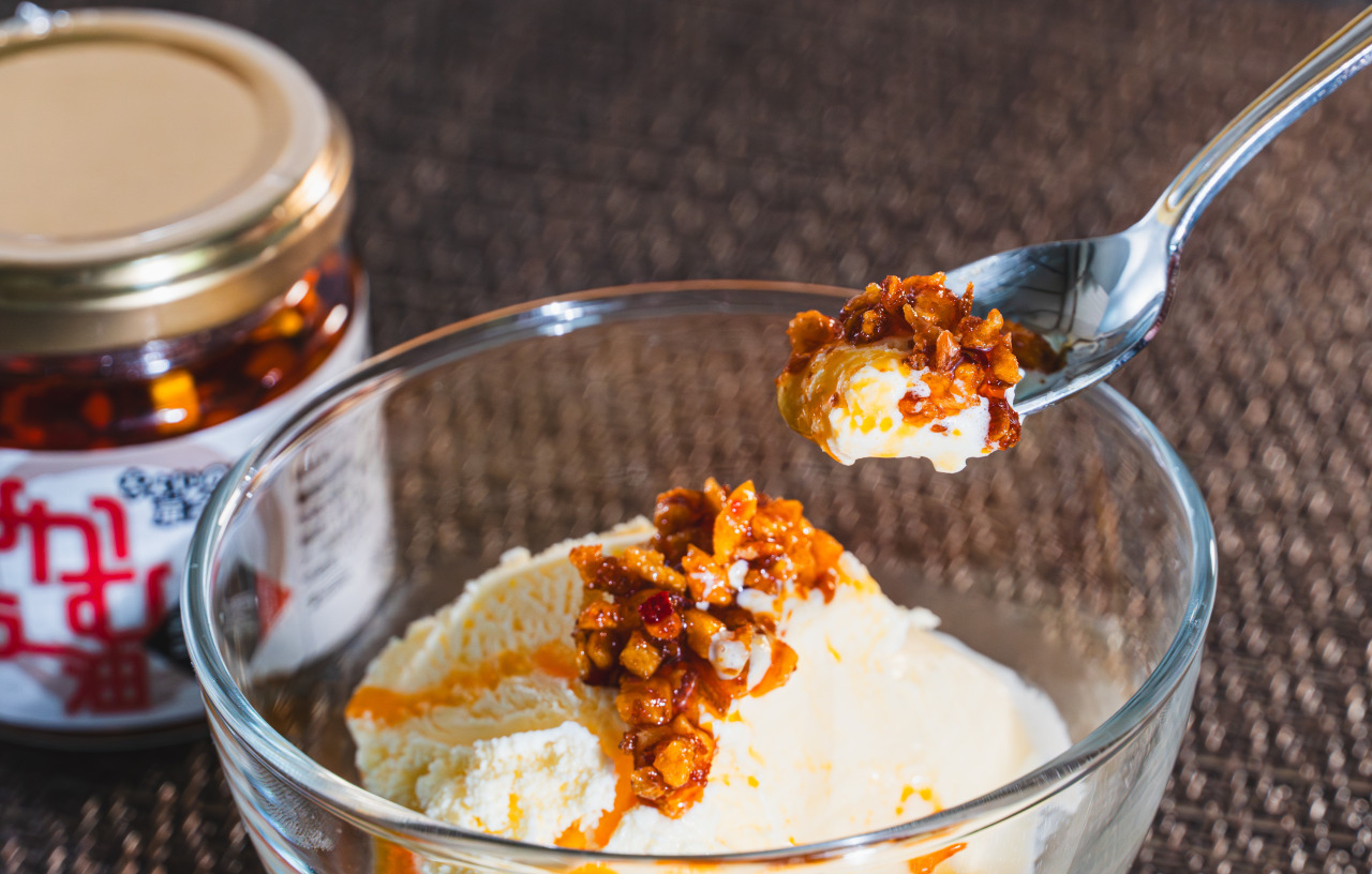 フライドガーリックとフライドオニオンを使用し、ザクザク食感にこだわった食べるラー油です。ほどよい辛さとクセになる味わいで、どんなものに【ちょいのせ】しても美味しくお楽しみいただけます。ご飯類やパン、麺類はもちろん、肉料理・魚料理・野菜料理からバニラアイス等甘い物まで何でも来いの【ちょいのせ】革命です。