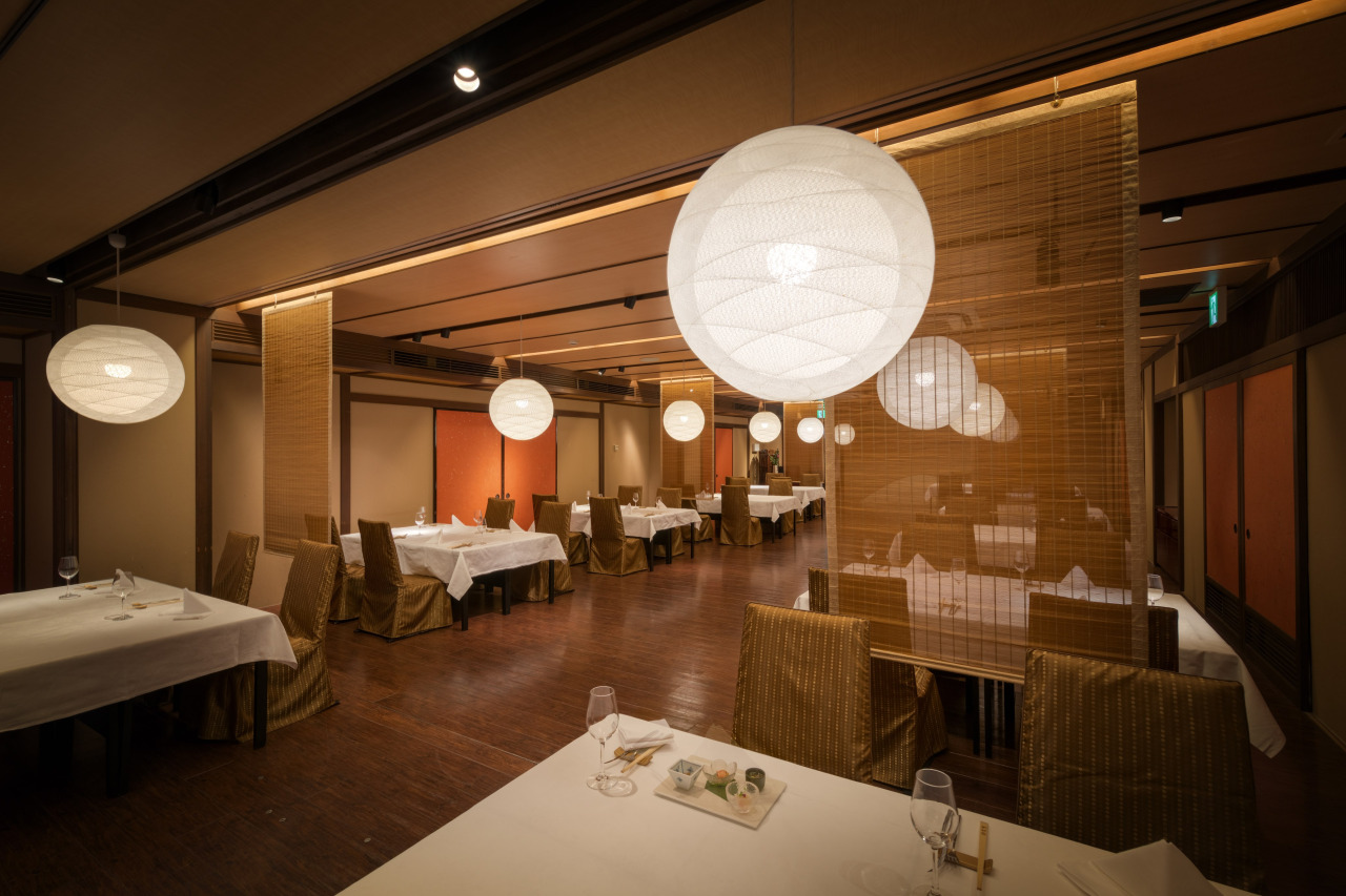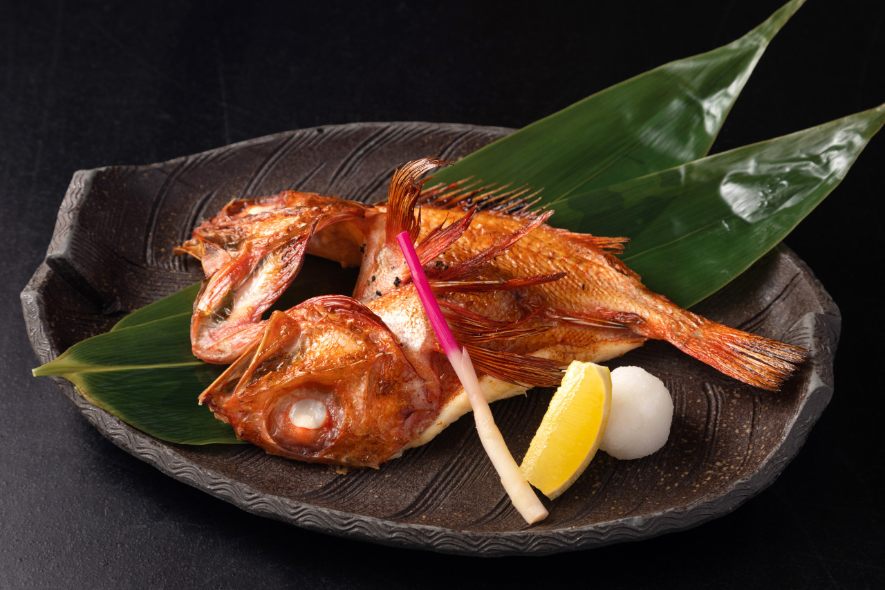 旬の県産食材を中心としたコースを提供。また、お部屋食では懐石風のお料理を、レストランでは新鮮食材の炭火焼を中心としたメニューを準備。