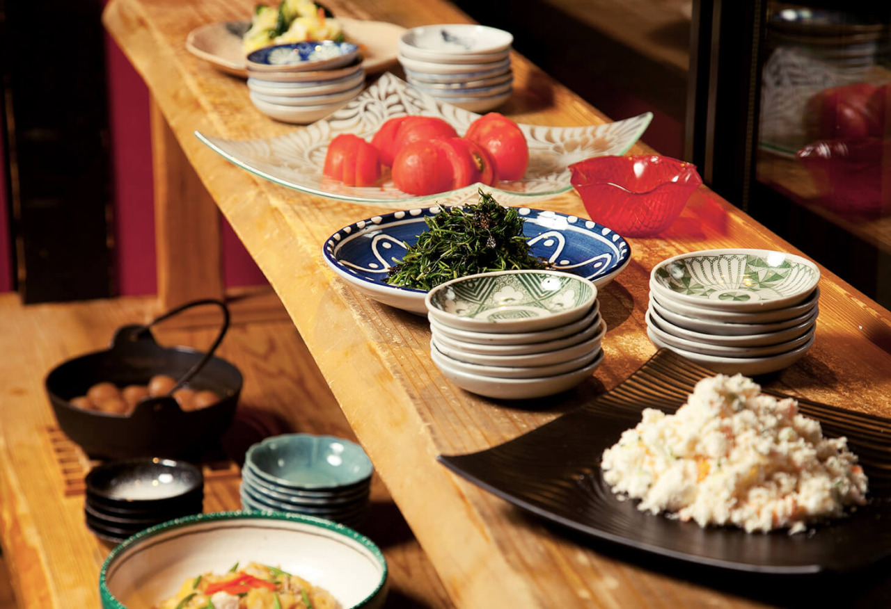 旬の野菜、旬の素材を中心に、そのものの美味しさ、季節を感じていただける献立をご提供しております。また、蔵王の旬、素材で使用した「おばんざい」も好評で、ぜひ、「山月木」で蔵王の滋味をご堪能くださいませ。