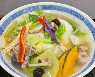 当店では,焼肉丼の肉は宮城野ポーク肩ロースを使用しています。 米は県産ひとめぼれです。 タンメンは白菜、ネギ、キャベツ、人参等県産野菜中心です。