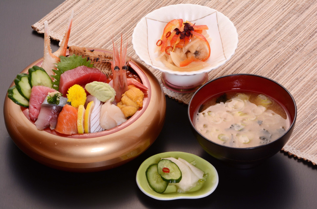 - ○「石巻・三陸金華山沖」で採れた四季の魚介類を取り入れた「金華にぎり・金華丼」を提供しております。(下記は例示です。仕入れ等の都合により内容が変更になる場合があります。)