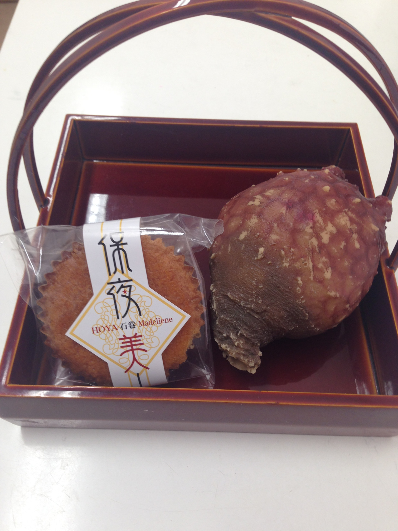 - 当店では,石巻漁港で水揚げされた「ホヤ」の粉末を使用した菓子「ホヤマドレーヌ」や,宮城県産米粉を使用した「ごまゆべし」などを年間を通じて提供しております。