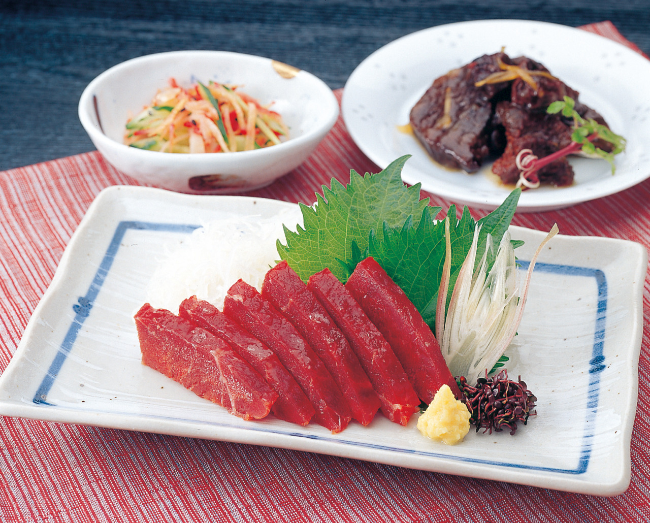 当館では,県内(塩釜港・石巻港等)に水揚げされた,四季折々の旬の魚介類を中心としたメニュー並びに地元名産のくじら料理をご用意させていただき,皆様のお越しをお待ちしております。
