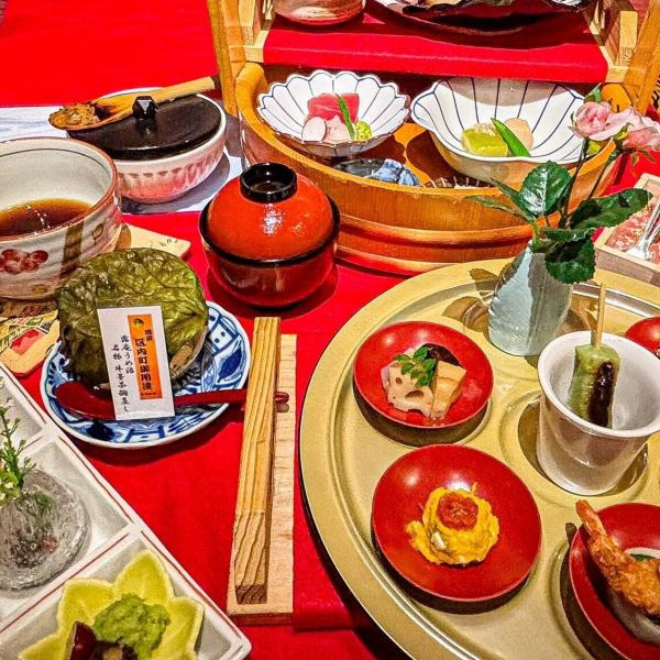 - ○年間を通して県産の食材をメインとした料理を15品以上提供します。