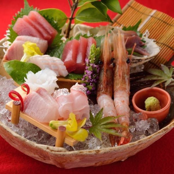 宮城産の海、山、里の食材を四季折々のコース料理や単品料理に使用し、海産物は「かき、ホヤ、穴子、キンキ、かれい、北寄貝、しらす」など、できるだけ県内産にこだわり使用し、他県からのお客様に喜んでいただいている。野菜類「ニラ、もやし、トマト、空豆」などは宮城産を使用し、その他の野菜も県内産の入荷がある時は、できるだけ使用する様心掛けています。米はもちろん宮城米を使用。山菜もふきのとう、たらの芽、山うどなどは県内産を使用し、無い時は東北地方産にこだわり使用しています。