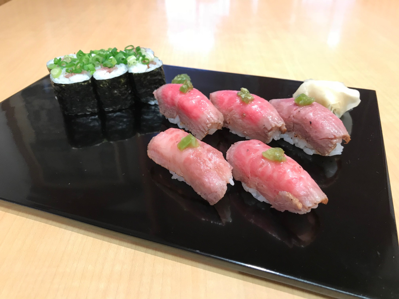 ○仙台牛の自家製ローストビーフを使った寿司や料理を通年提供しております。