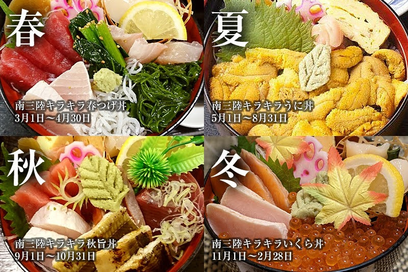 - ○年間を通して県産の食材をメインとした南三陸キラキラ丼などを提供します。