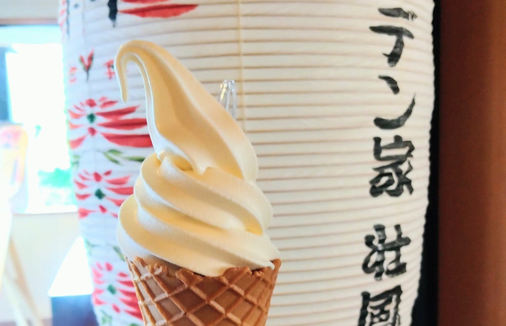 ①温泉屋敷『バーデン家 壮鳳』の豆乳ソフトクリーム