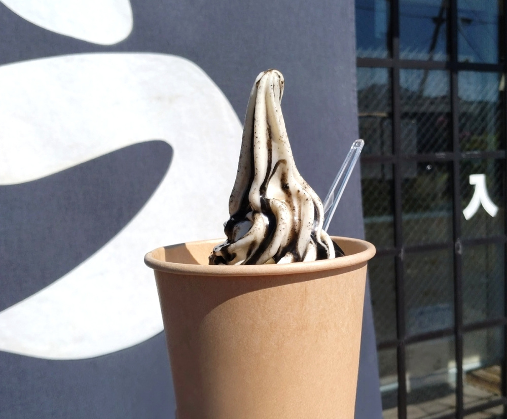 老舗の豆腐屋さんが作る豆乳の風味にこだわったソフトクリーム。今回いただいた黒ごまソフトカップは、豆乳感がありながら軽い口当たりで、黒ごまの風味が香る美味しいお味でした。