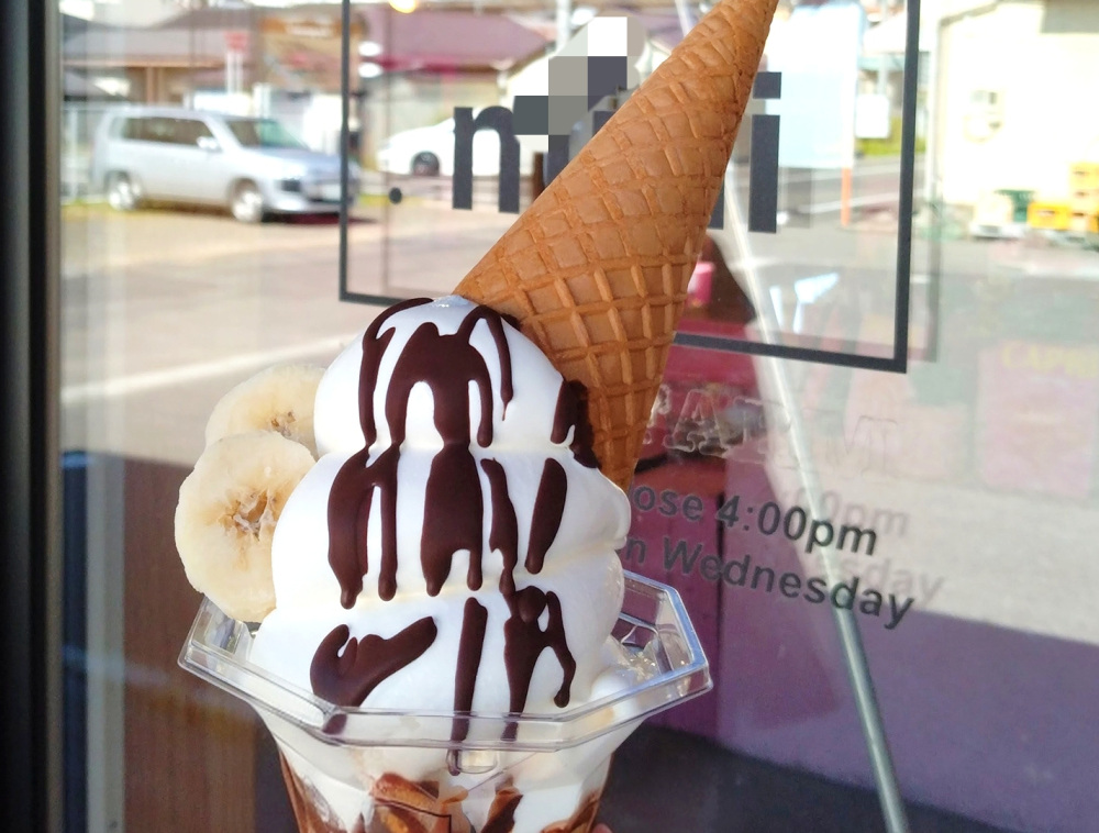 生クリームのように舌触りがなめらかで、たっぷりなフルーツを楽しむパフェのようなソフトクリーム。今回いただいたチョコバナナソフトは、カップの中にもバナナがぎっしりで満足。