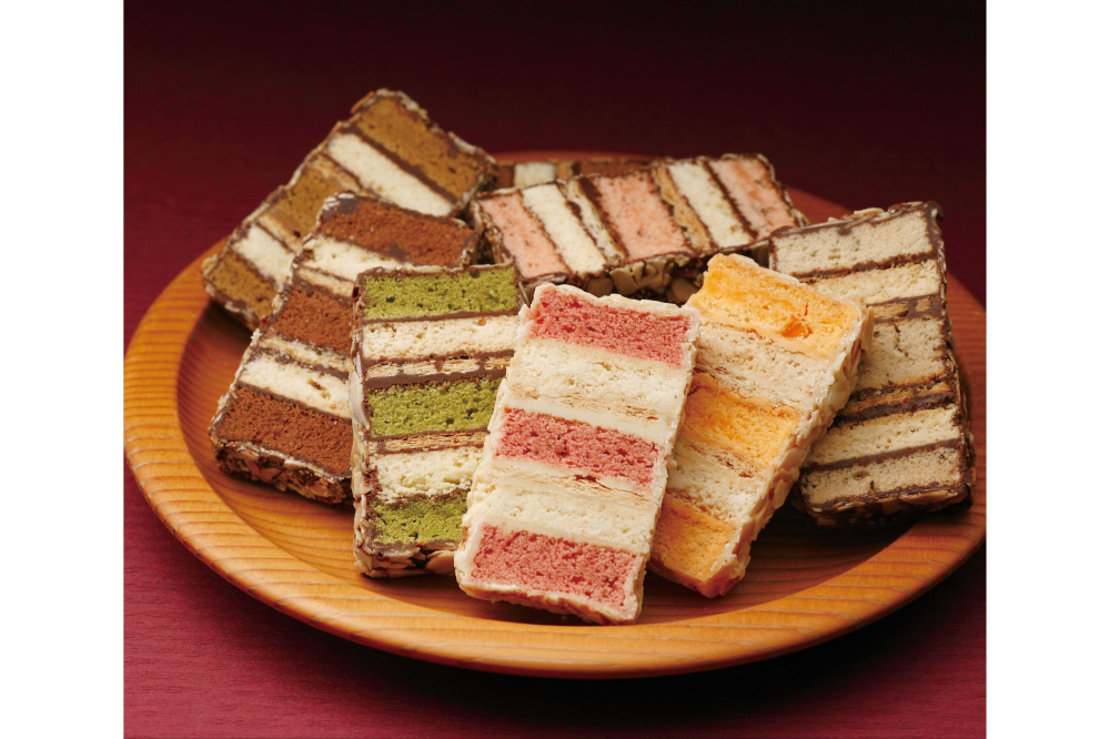 「気仙沼といったらこれ!」と地元で愛される洋菓子。幾層にも丁寧に重ねられた生地が独特で、他にはない食感を生み出します。ケーキのような…クッキーのような…サクッとふわっとした食感と、上品な甘さが絶妙。味のバリエーションが豊富な上、常温で持ち歩けることでお土産に喜ばれると大好評の贈答品です。見た目も可愛いスイーツをぜひご賞味ください!