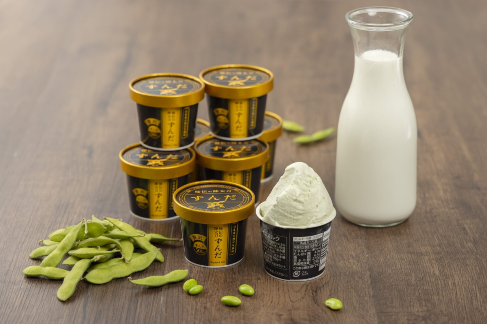 宮城を代表するずんだがジェラートになった「秘伝の陣太刀 ずんだ」は、希少な宮城県丸森町産の「秘伝豆」を惜しみなく使用。豆の食感を残したこだわりの製法で、ずんだの濃厚な味わいを実現しています。そして、丸森町の干し柿の間にクリームチーズとくるみをサンドした冷菓「フロマージュ・ド・柿」は、大人のスイーツとして人気を博しており、コーヒーや紅茶はもちろん、ワイン、ウイスキーなどのお酒にも合います。