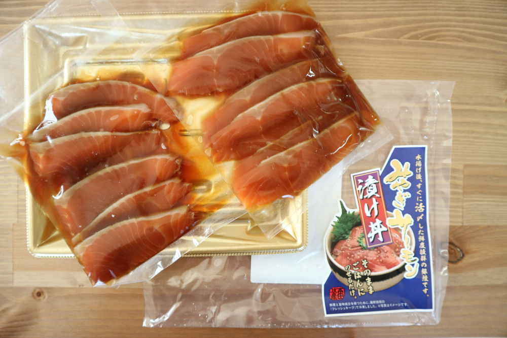 - 上品な甘みと脂のりのよさが人気の「みやぎサーモン」を贅沢に漬け丼の具にしました。ごはんにのせるだけでおいしい漬け丼が完成です。