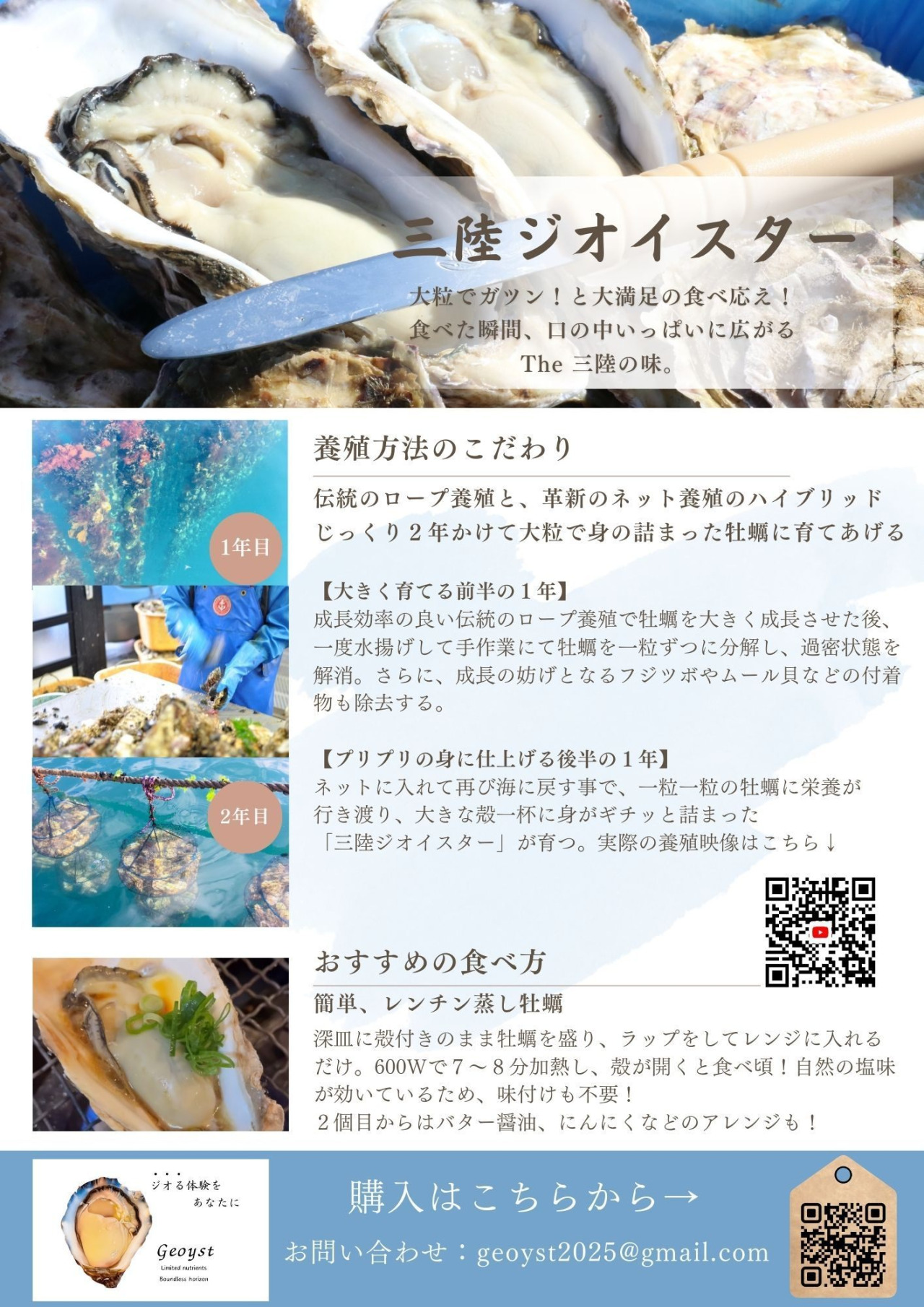 三陸伝統の養殖方法で大粒に育てた食べ応え抜群の【三陸ジオイスター】