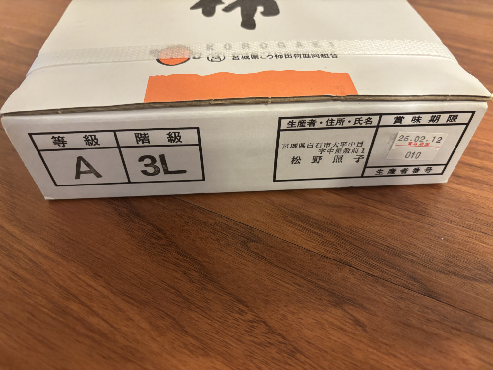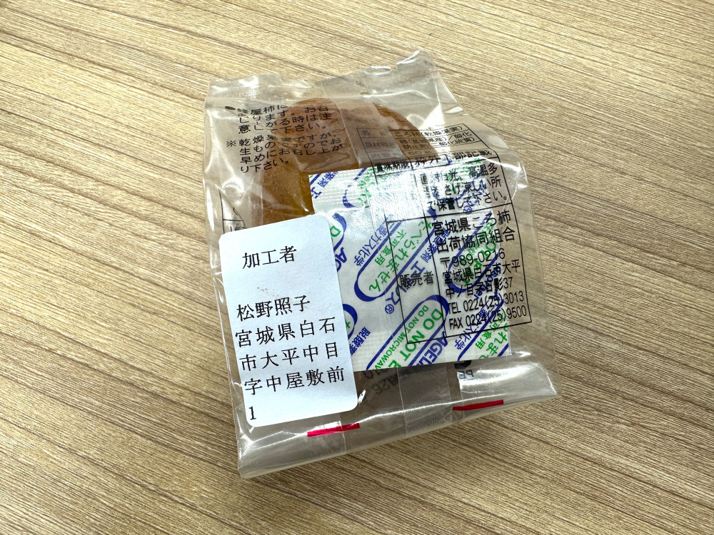 箱の側面を見てびっくり!そこには、生産者さんのお名前と、「生産者番号:010」の文字が。単なる工場生産品ではなく、一人の生産者さんが丹精込めて作ったものである証です。さらに驚いたのが、個包装の袋ひとつひとつにも、しっかりとお名前が入っていること。「私が責任を持って作りました」という生産者さん深い愛情が伝わってくるようです。食べる前から、「あぁ、大切に作られたものなんだな」という温かい気持ちになり、このころ柿がより一層愛おしく感じられました。